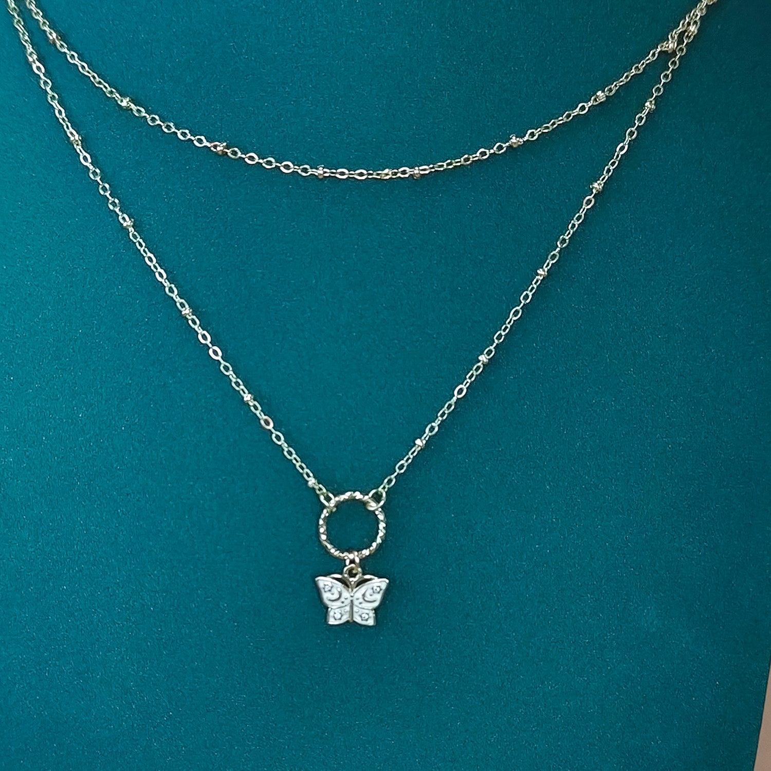 Gold Plated Dual Layer Butterfly Pendant Necklace