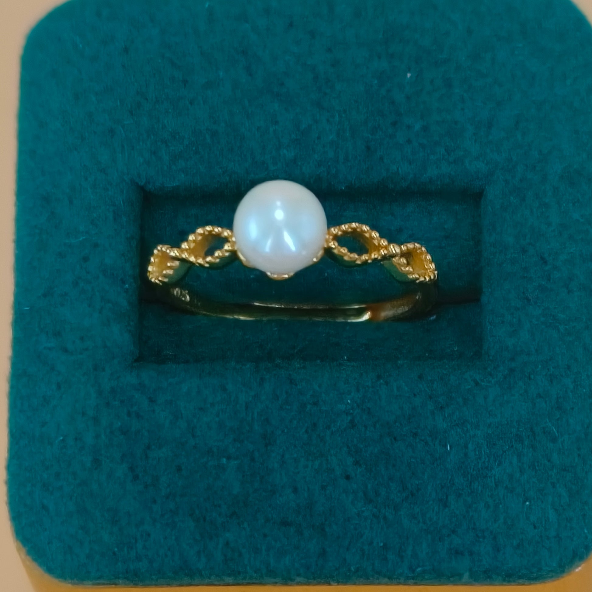 This ring brings a perfect blend of romance and elegance. Featuring a smooth, radiant pearl at its centre, this ring is enhanced with a beautifully twisted rope-style band, adding texture and charm. The warm gold finish brings a luxurious touch, making this ring ideal for everyday elegance, special events, or meaningful gifting.