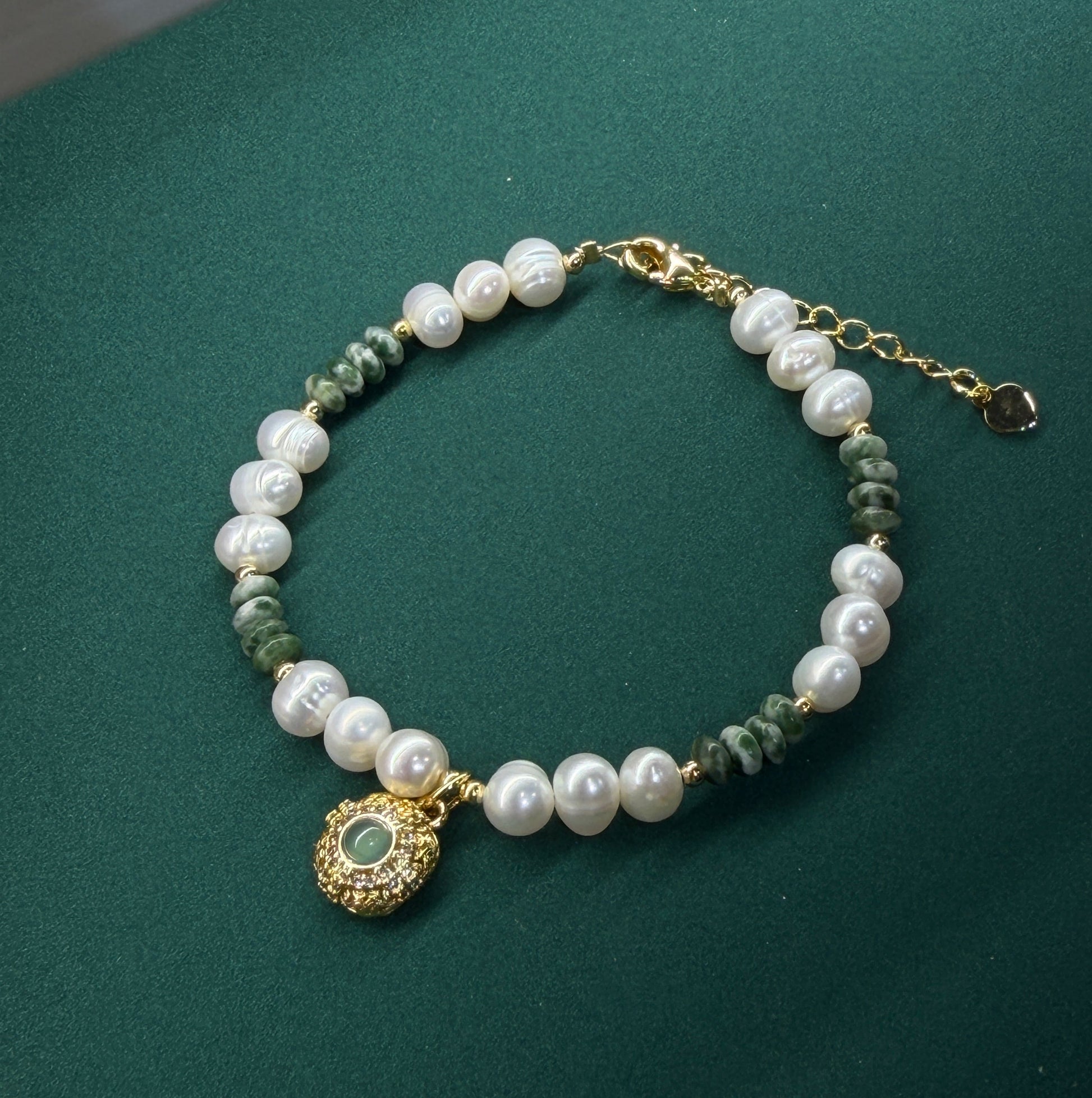 Malachite Halo Pearl Charm Bracelet