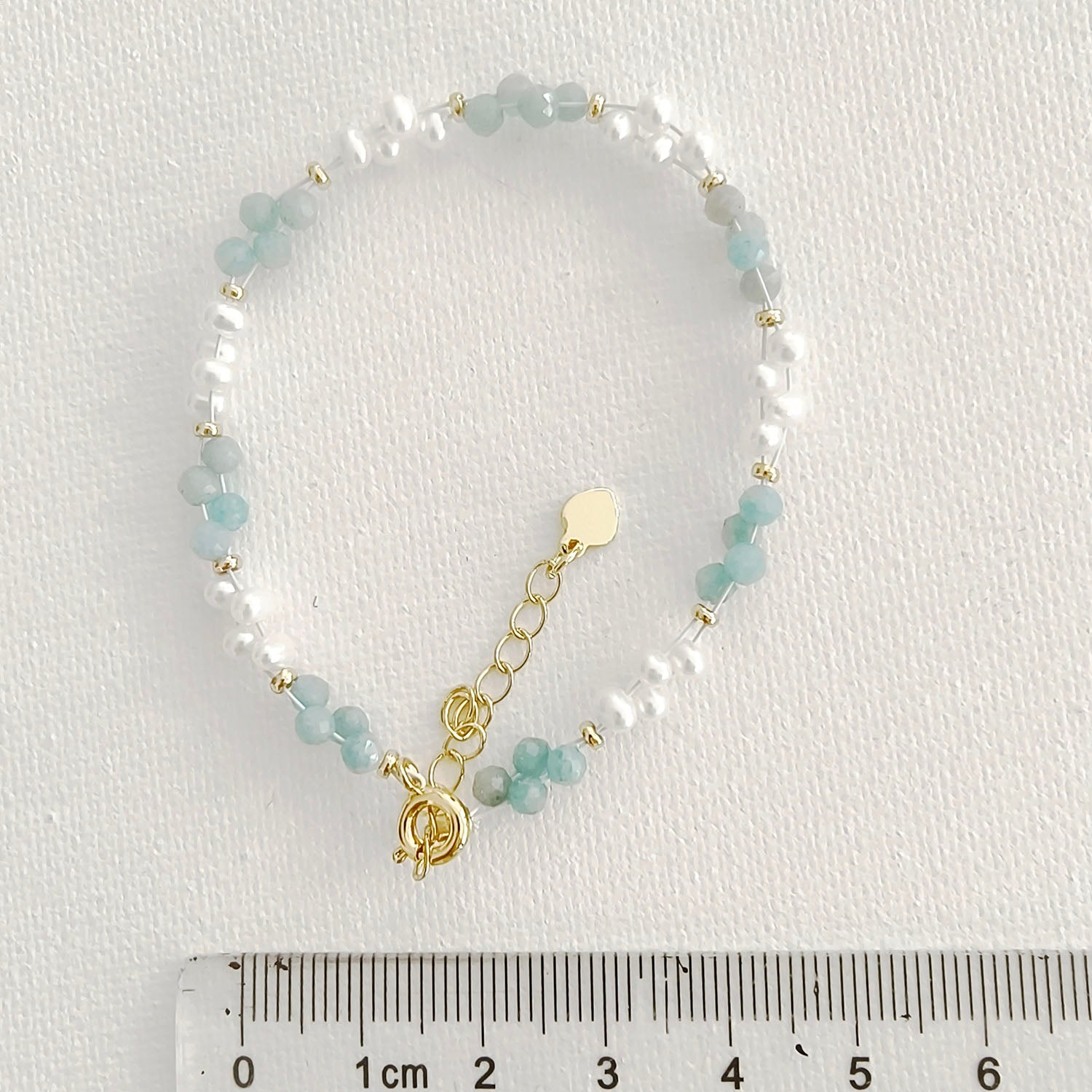 Fresh and elegant bracelet featuring soft mint-green jade beads paired with luminous freshwater pearls and delicate gold-tone accents.